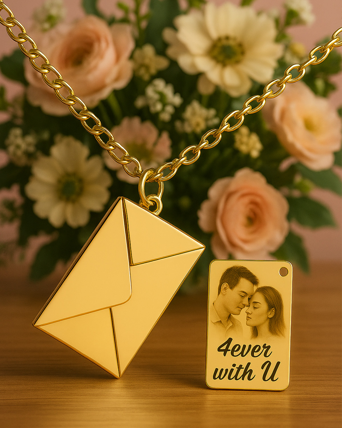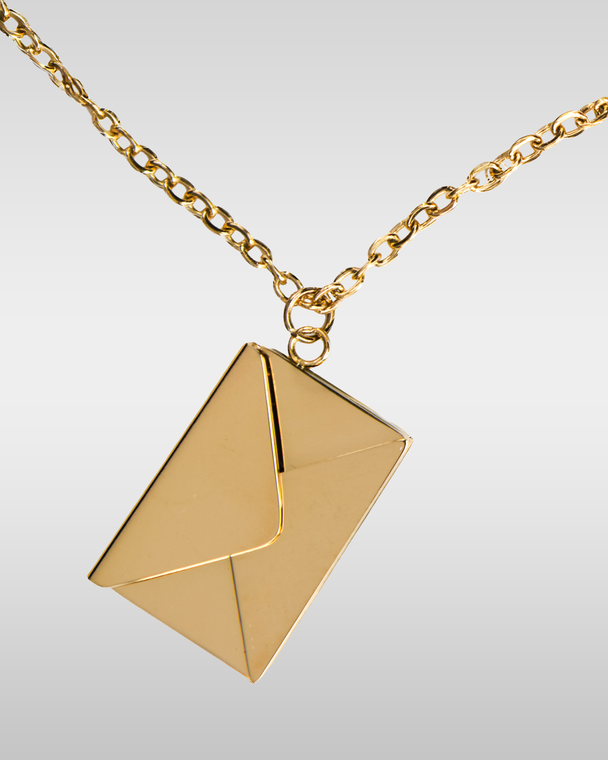 Crafted from premium stainless steel with a high-polish gold finish, this necklace is hypoallergenic, durable, and designed to keep its brilliant shine. The envelope locket hangs from a fine chain that complements its elegant design, making it suitable for everyday wear or as a meaningful gift.