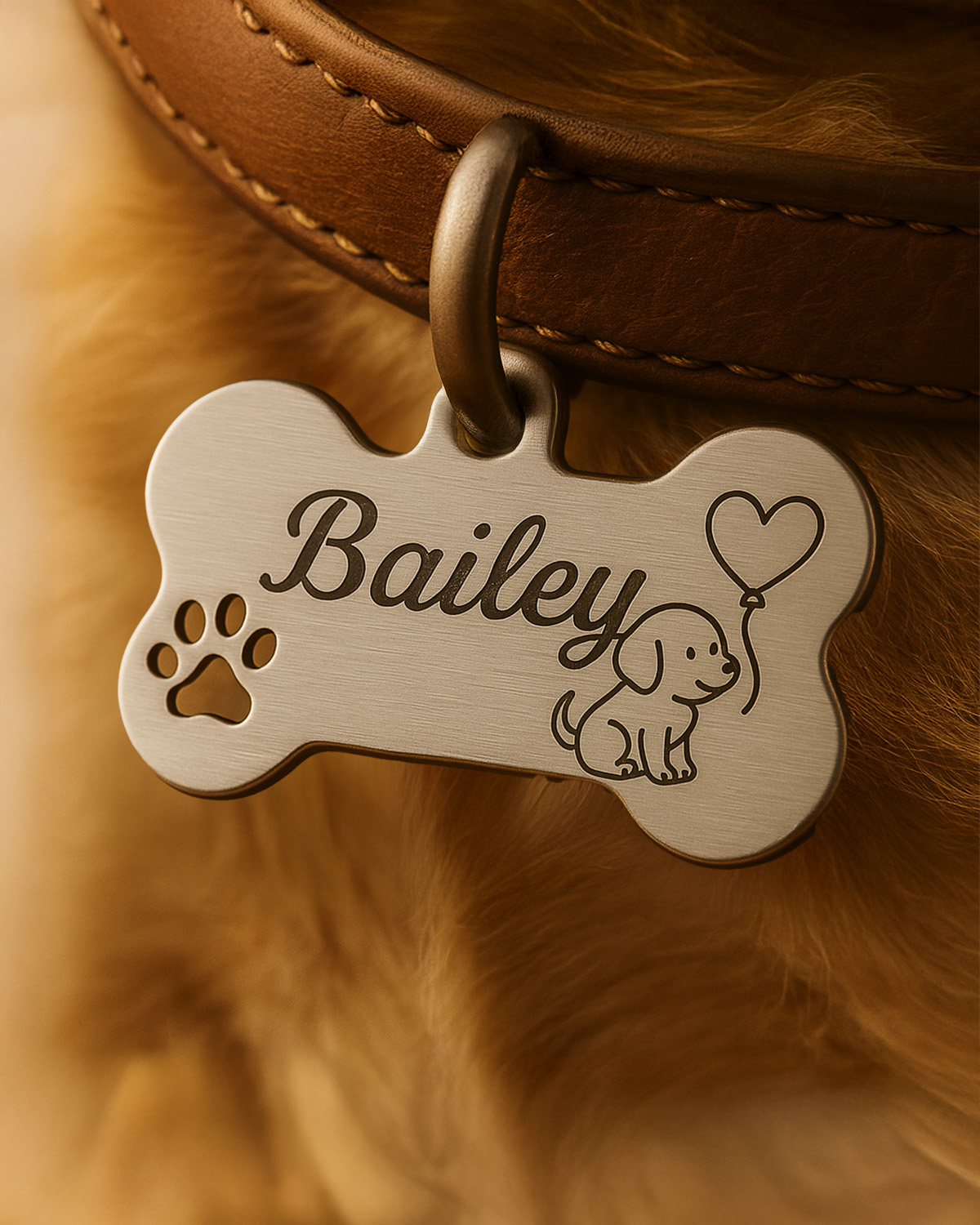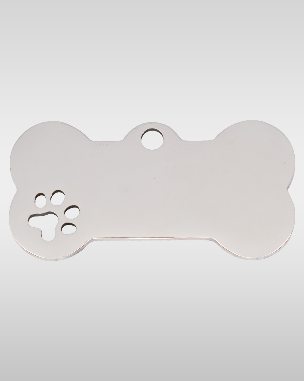 With its classic bone shape, paw cut-out, and optional playful engravings, it is as charming as it is practical.
